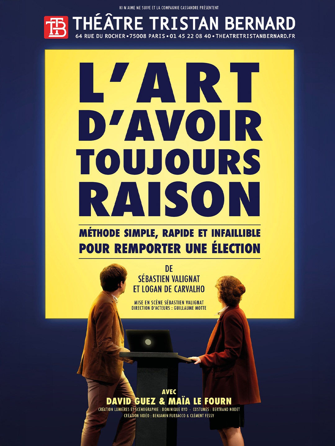 En partenariat avec Ki Maime Me Suive, une nouvelle distribution (Maïa Lefourn et David Guez ) donne une série de représentations au Théâtre Tristan Bernard tous les jeudi et vendredi à 21h et les samedi à 18h30 (et à partir du 24 mars les mardi à 19h à partir du 24 mars) réservations ici